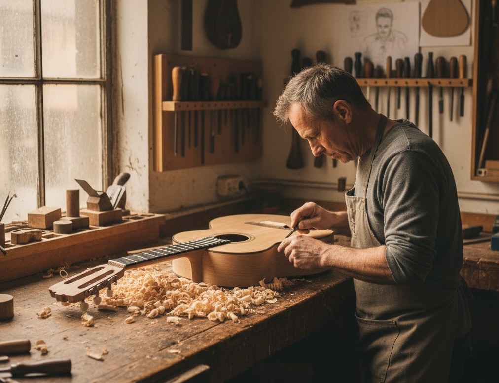 En este artículo repasamos cinco aspectos clave que distinguen una guitarra hecha por un luthier de una guitarra industrial, y por qué esos matices marcan la diferencia tanto para el intérprete como para el instrumento a largo plazo.