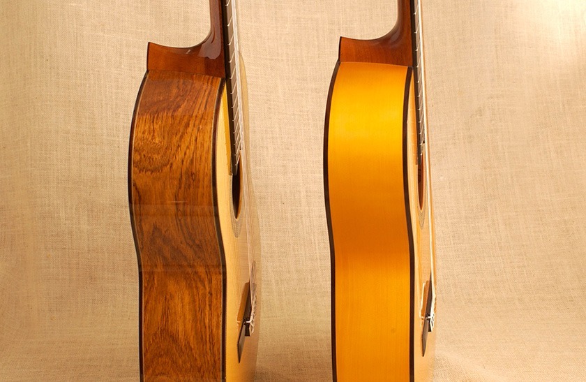 Aunque ambas guitarras comparten un diseño similar, las flamencas suelen ser más sobrias en su decoración, mientras que las españolas pueden incluir detalles más ornamentales, como filetes decorativos o acabados brillantes.