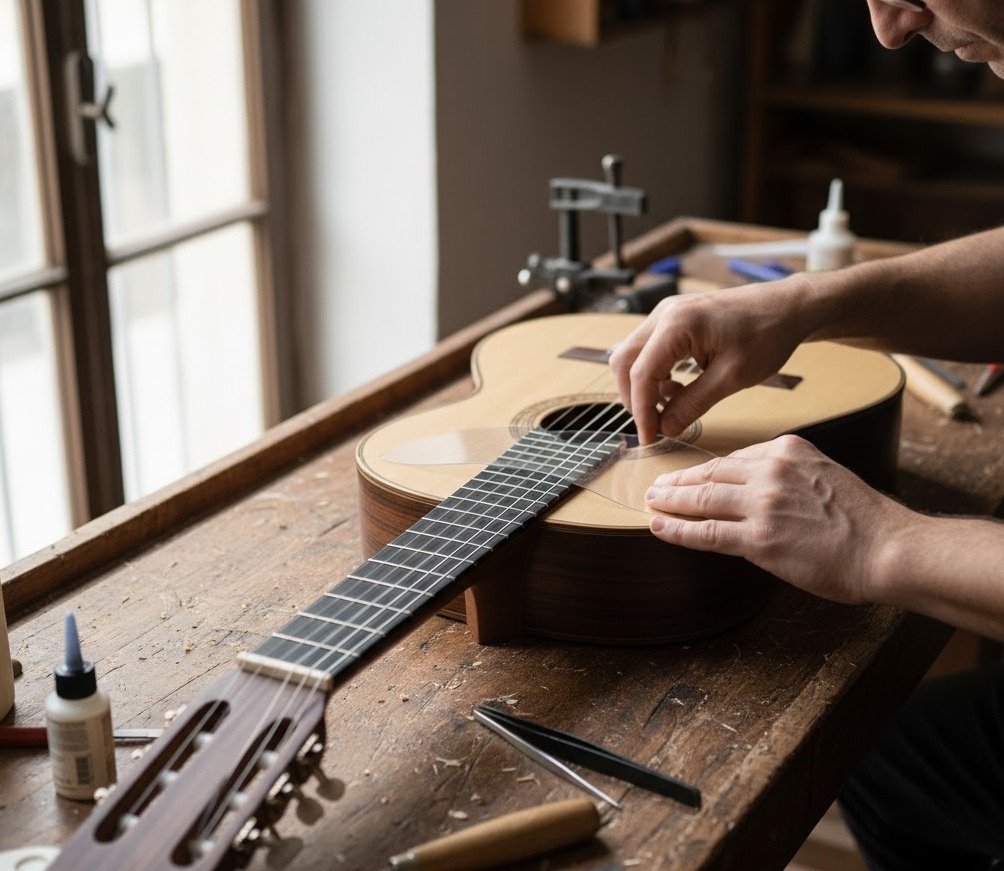 En guitarras de alta gama o instrumentos artesanales, lo más recomendable es que el cambio lo realice un luthier o un taller especializado.